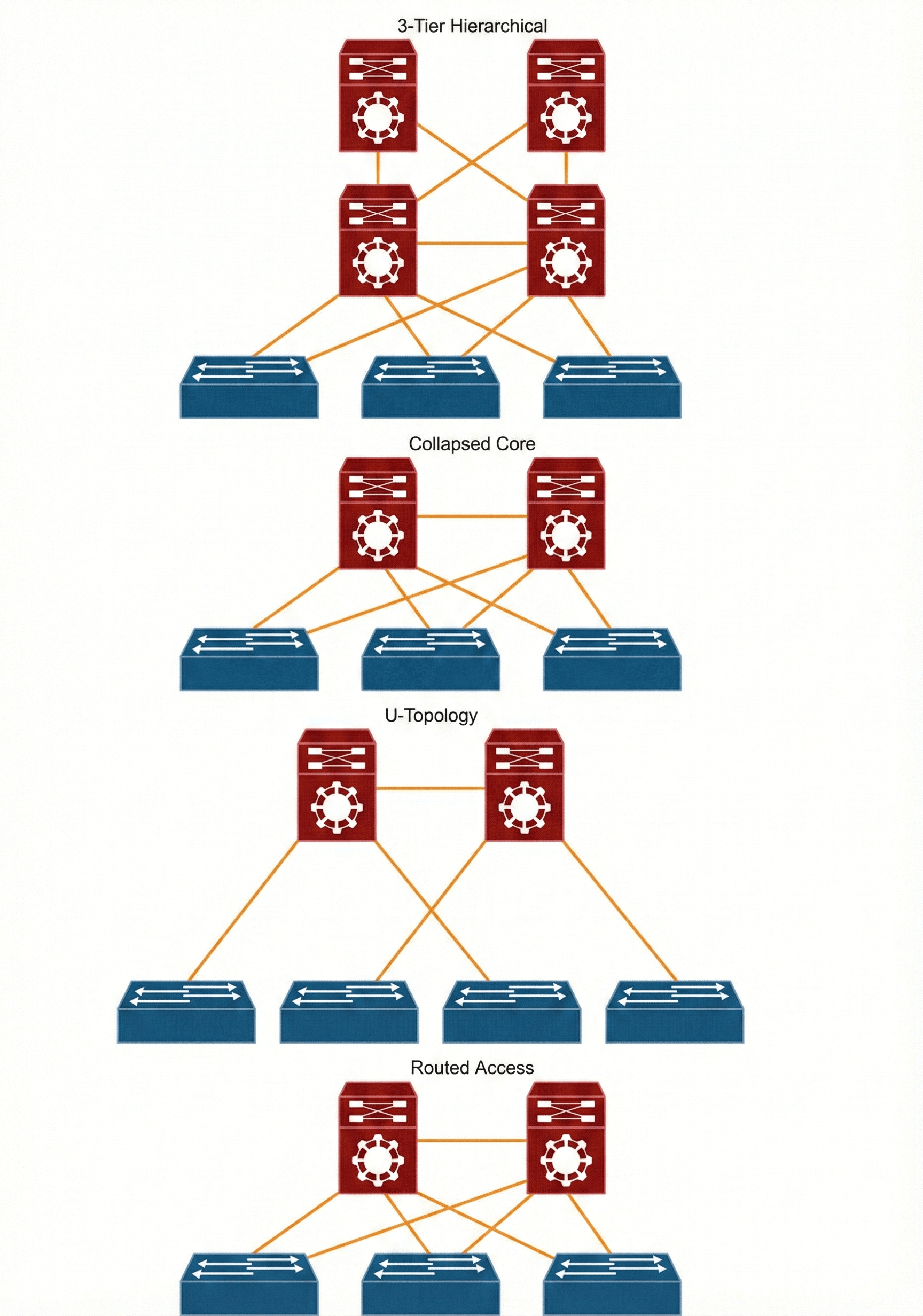 SD-Access fabric supports traditional hierarchical networks and arbitrarily designed networks.