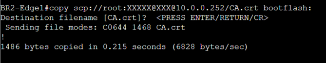 Copy the root certificate chain from the CA server to the BR2-Edge1 WAN Edge router bootflash (Use SCP for the file transfer)