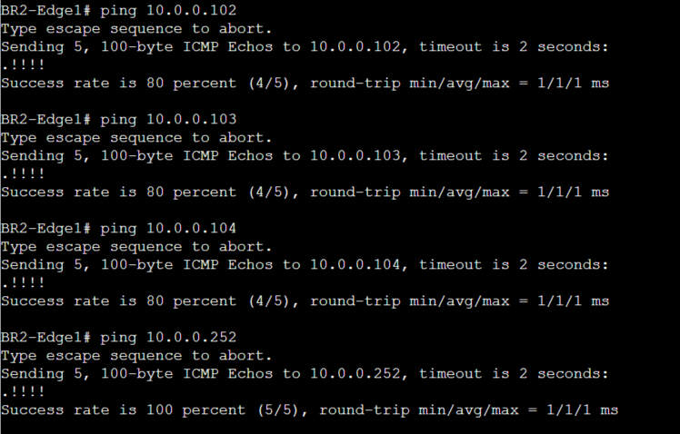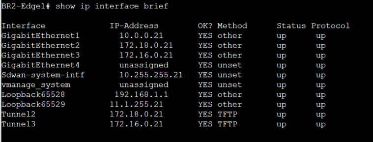 - Verified system parameters and connectivity on the BR2-Edge1 WAN Edge router.