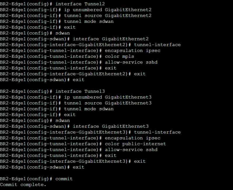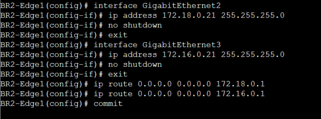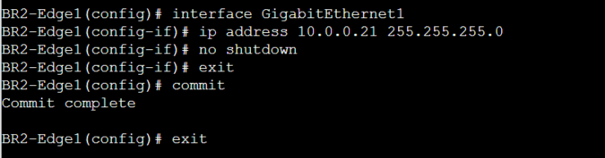 - Configured WAN and management interfaces on the BR2-Edge1 WAN Edge router.