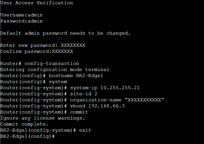 In this task, you will configure and verify the system parameters and interfaces of the WAN Edge routers using the CLI. To access the CLI of a WAN Edge router - BR2-Edge1.