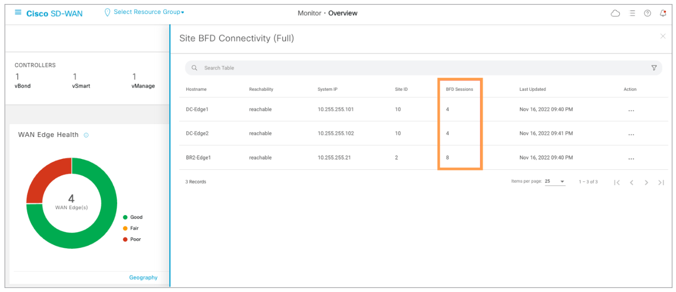 In the WAN Edge List, hover your mouse over the state for rows three and four for the BR2-Edge1.