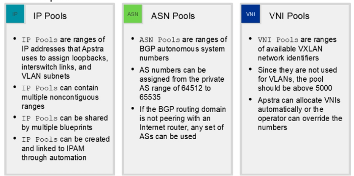 With Juniper Apstra , You can configure below pools of logical elements used when constructing a blueprints.