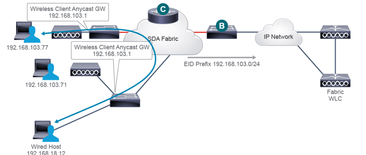 SD-Access wireless clients connect and communicate over the fabric as follows: