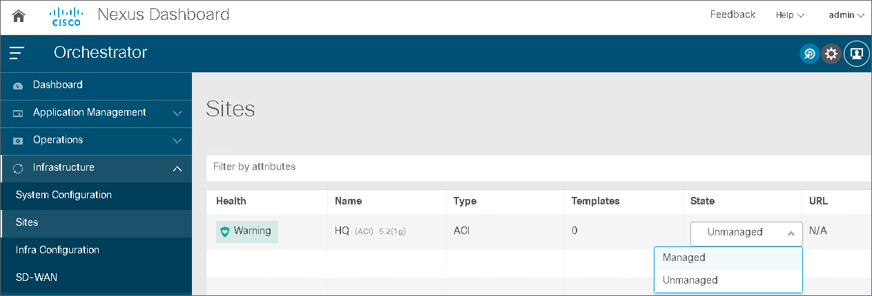 Login to Nexus Dashboard. You will configure a site through the navigation pane.