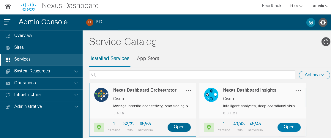 Go to Services and open the Nexus Dashboard Orchestrator.