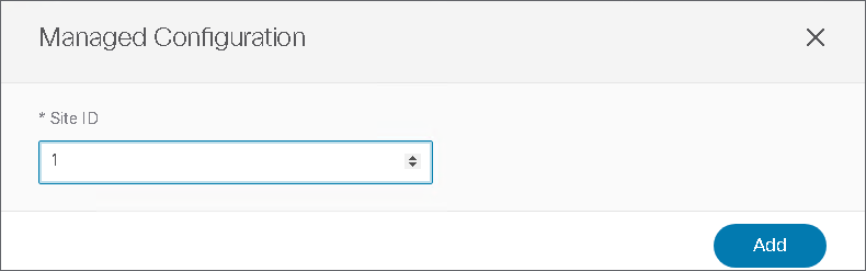 In the Orchestrator, go to Infrastructure > Sites. Set the state of the HQ site to Managed. Configure the Site ID 1 and click Add.