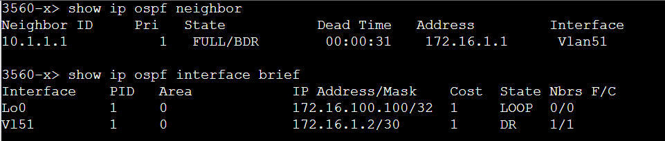 SVI for VLAN 51 is used to establish point-to-point connectivity to leaf-b. The Loopback interface with IP address 172.16.100.100/32 is announced into OSPF and you will test connectivity using that IP address.