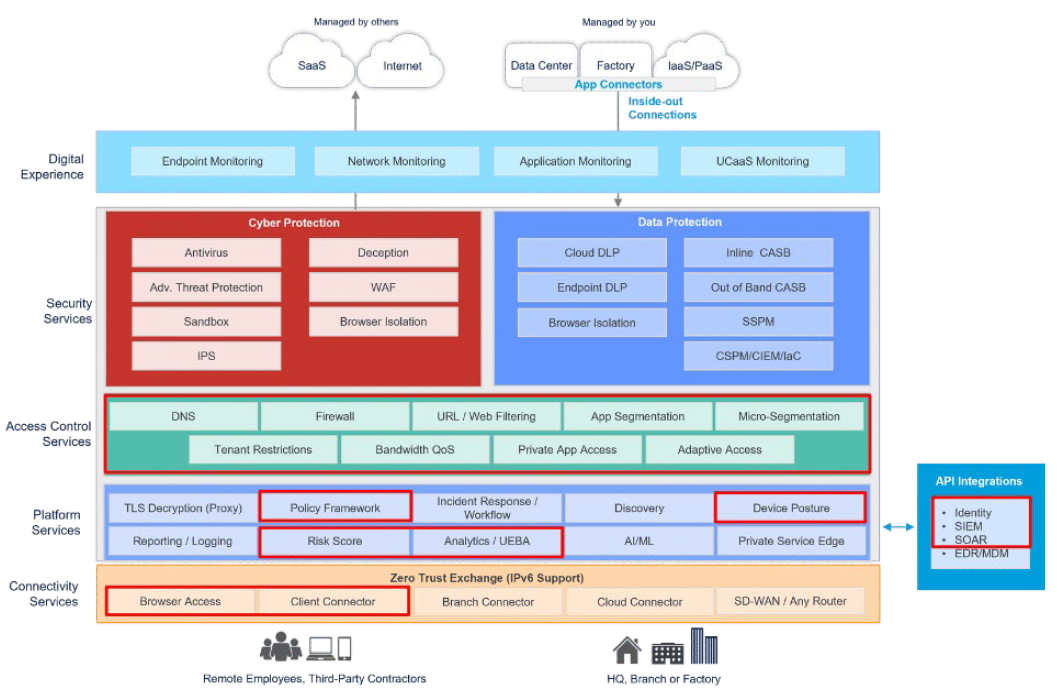 In this section, we'll review the pieces of the Zero Trust Exchange diagram that are highlighted in red below.
