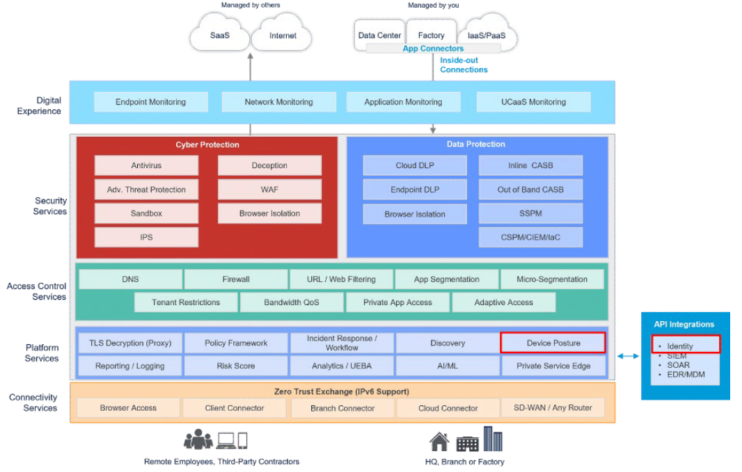 It also leverages posture from other functionalities within the Zero Trust Exchange, including Browser Access, the Zscaler Client Connector in the Connectivity Services suite, and Identity Integration.