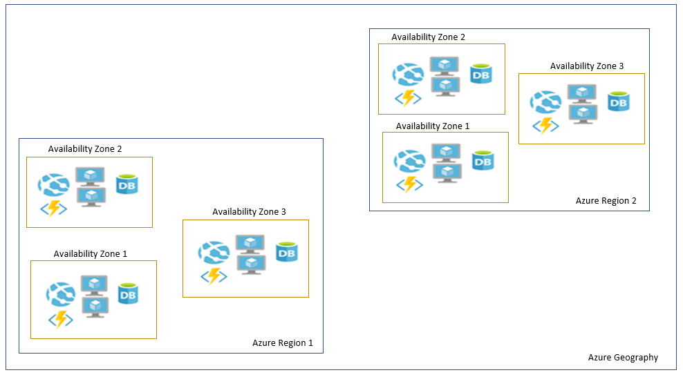 Below figure describes the Azure Geography for a given a region and Availability Zones