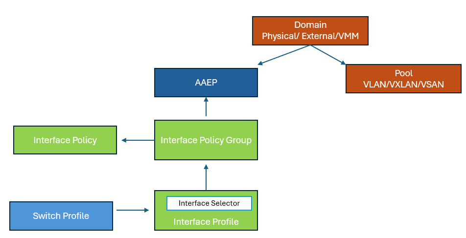 The configuration of access ports in Cisco ACI fabric requires the use of Interface Policies and Switch Policies.