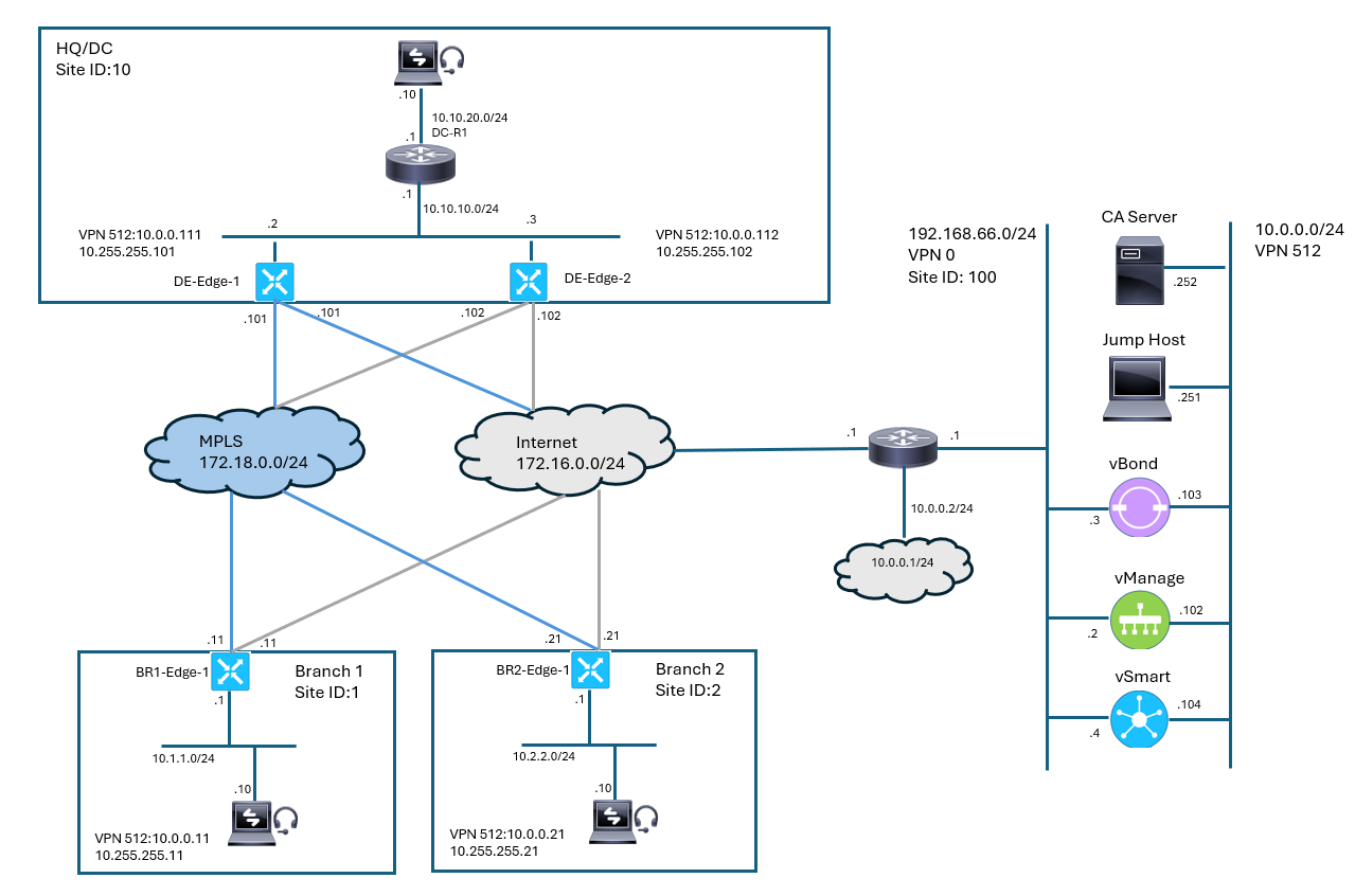 In this lab topology,You will deploy the BR2-Edge1 router into the overlay network. The BR1-Edge1 router was initially deployed in the overlay network but is currently experiencing issues that you must troubleshoot and resolve.