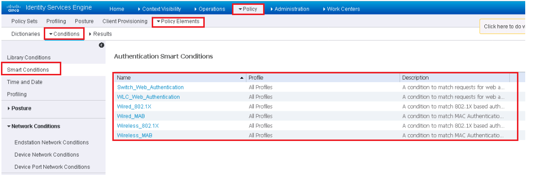Each ISE rule are defined by certain conditions and there are two type of IE Conditions.