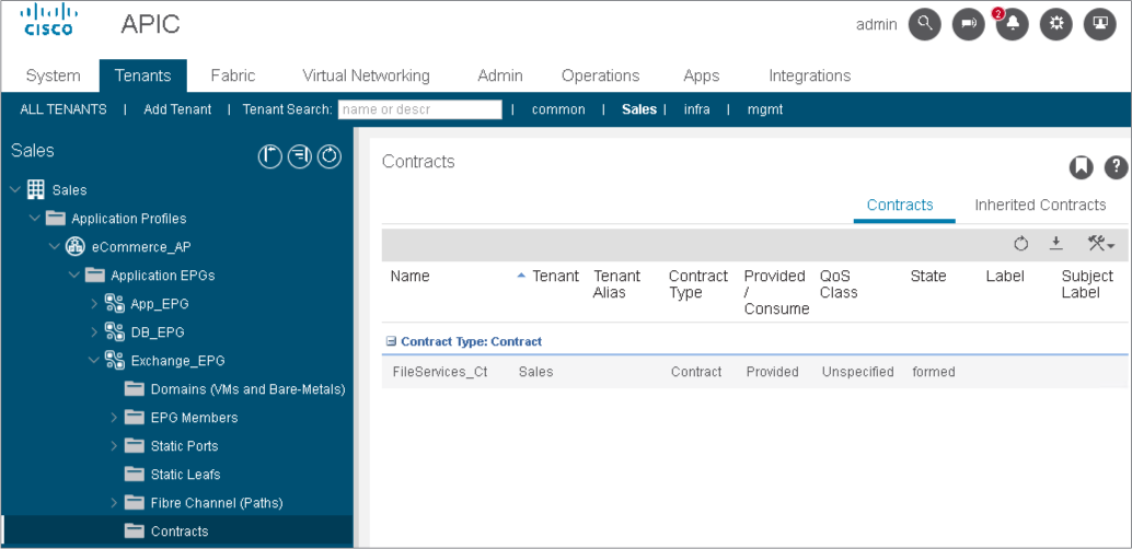 Go to Application Profiles > eCommerce_AP>Application EPGs > Exchange_EPG > Contracts and assign FileServices_Ct as a provided contract.
