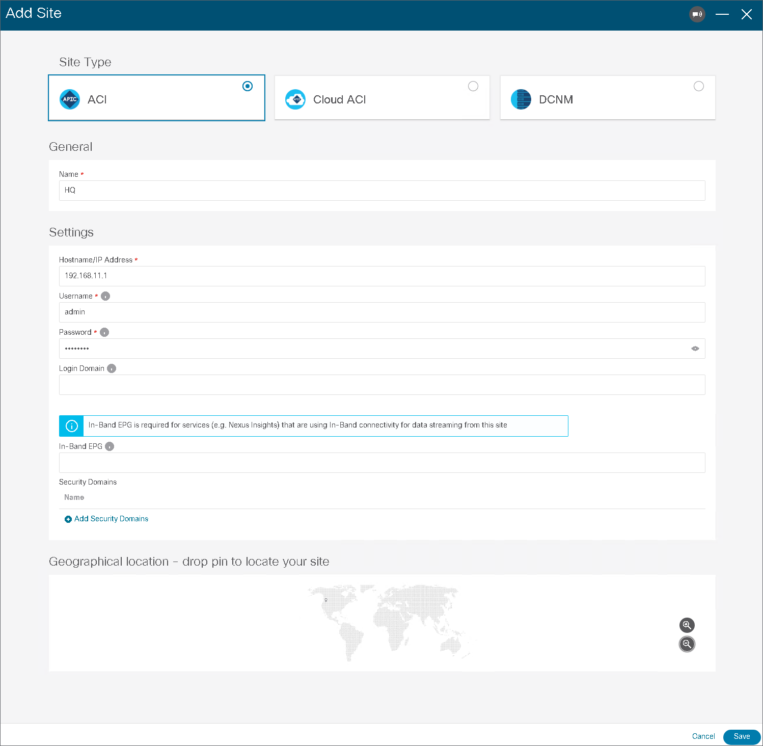 Login to Nexus Dashboard. You will configure a site through the navigation pane.