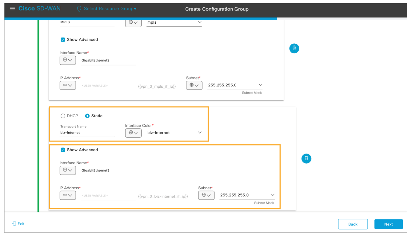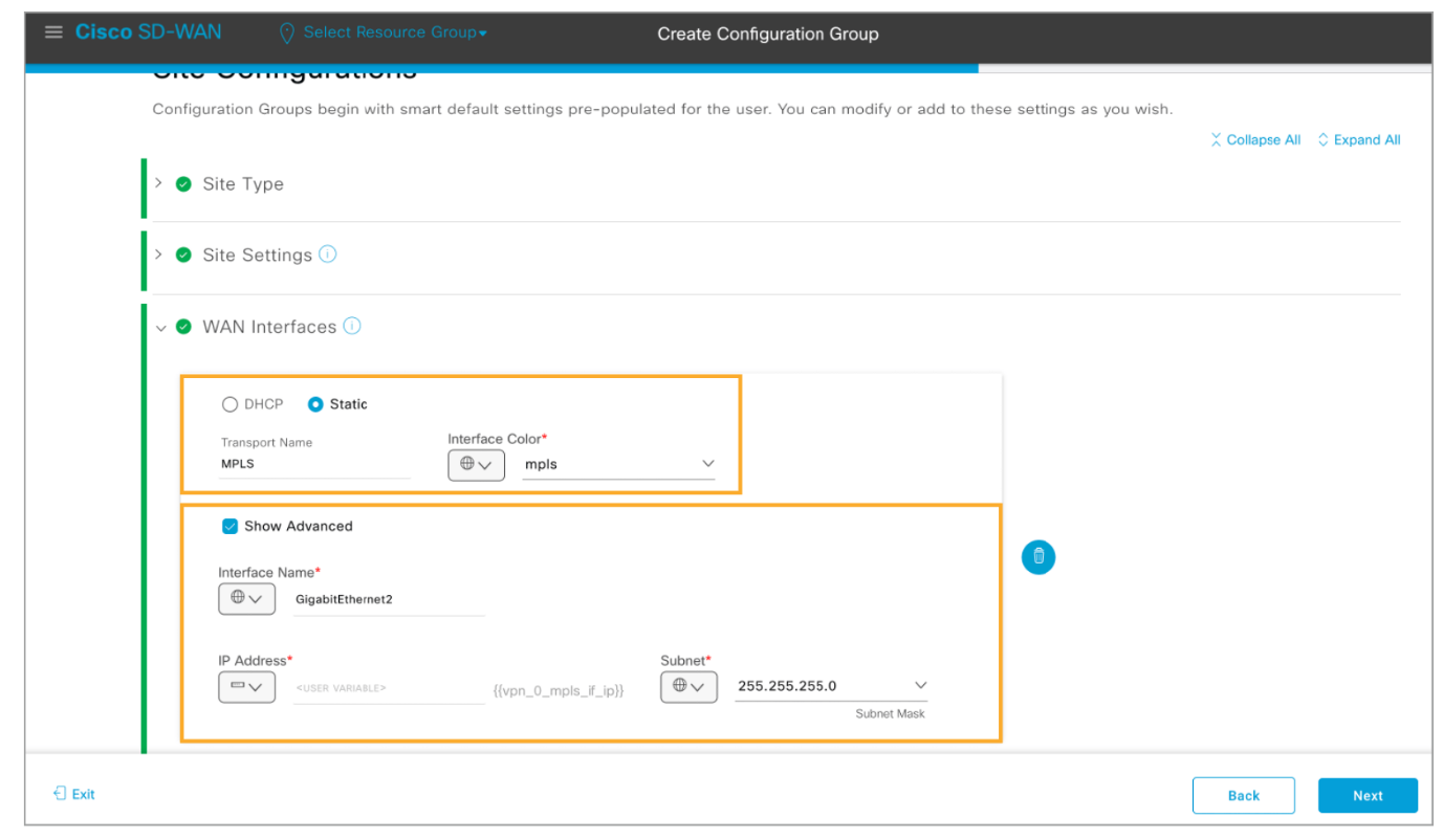 Step 4: Configure the MPLS WAN interface with the following settings: