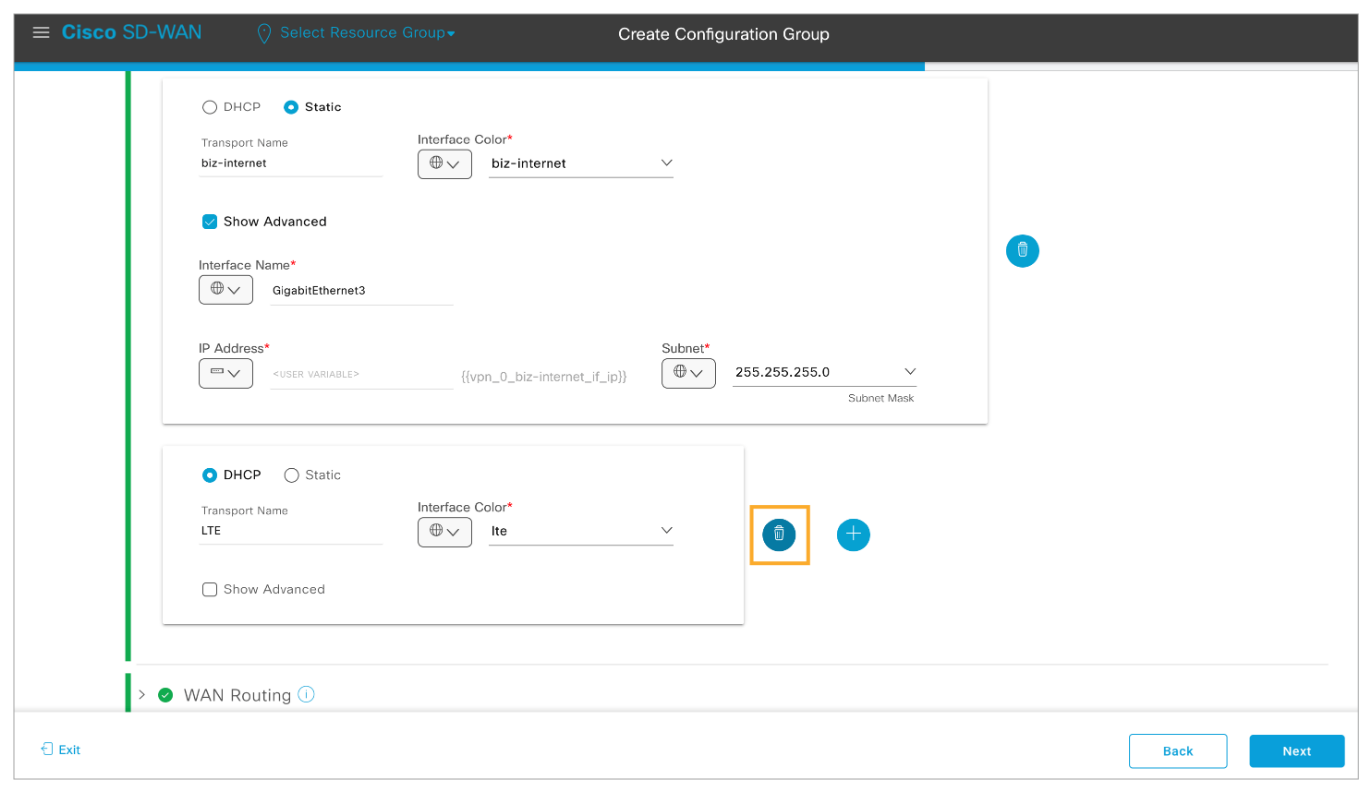 Step 6: Scroll down and remove any other WAN interfaces. Use the trash can icon to delete an interface.