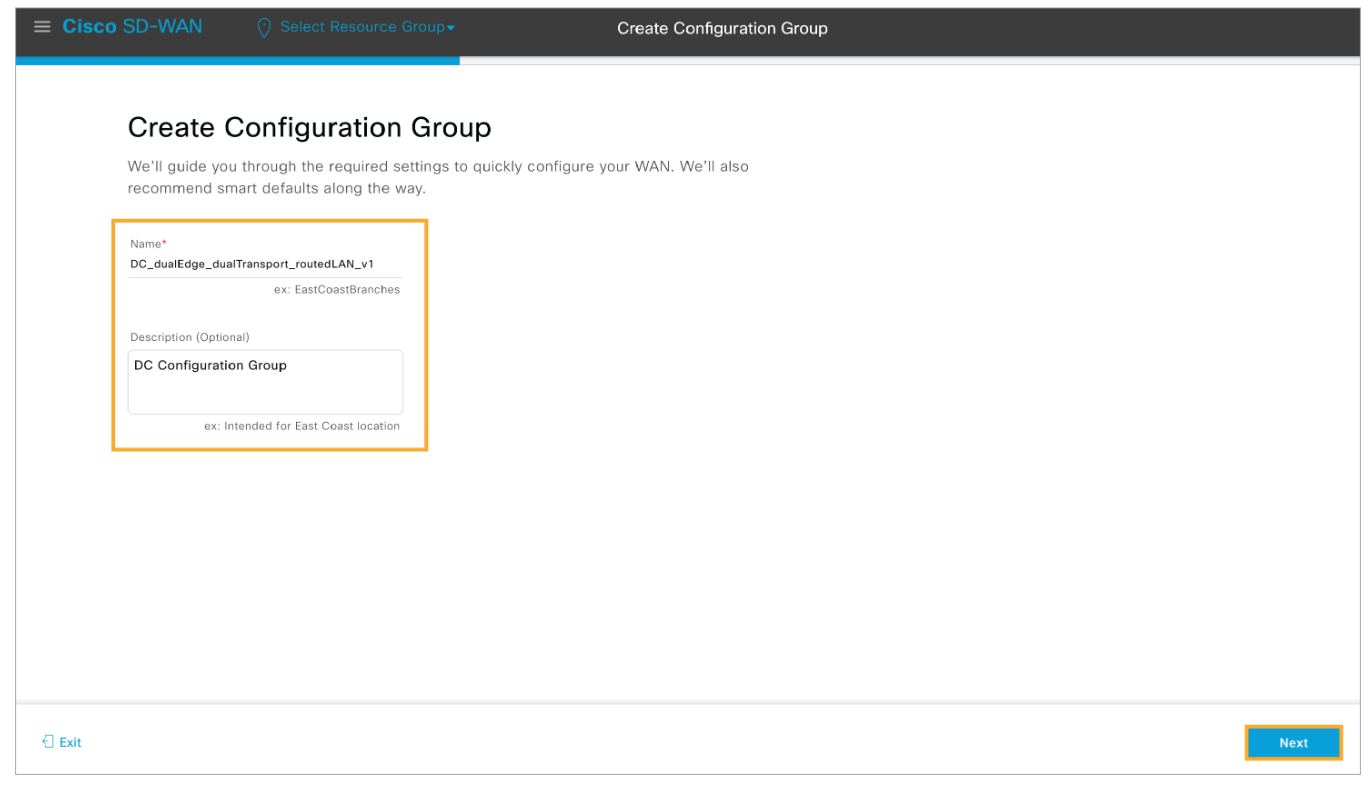 Step 9: Start the Create Configuration Group workflow once more to create a configuration group for the Branch 1 site.