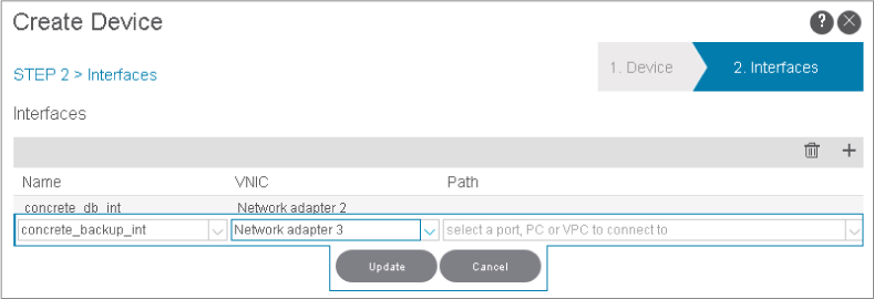 When a concrete device is added to a logical device, concrete interfaces are mapped to the logical interfaces. You will map the interfaces in the next step.