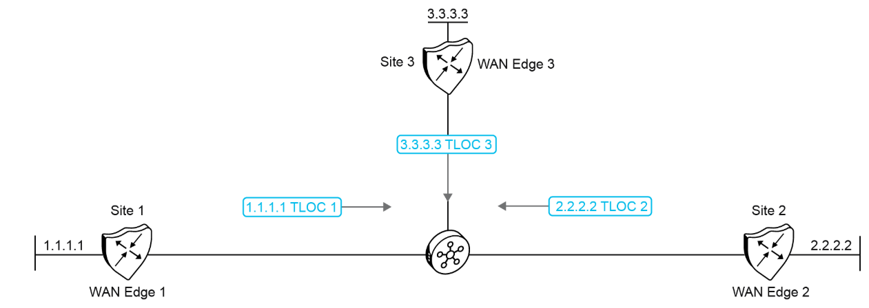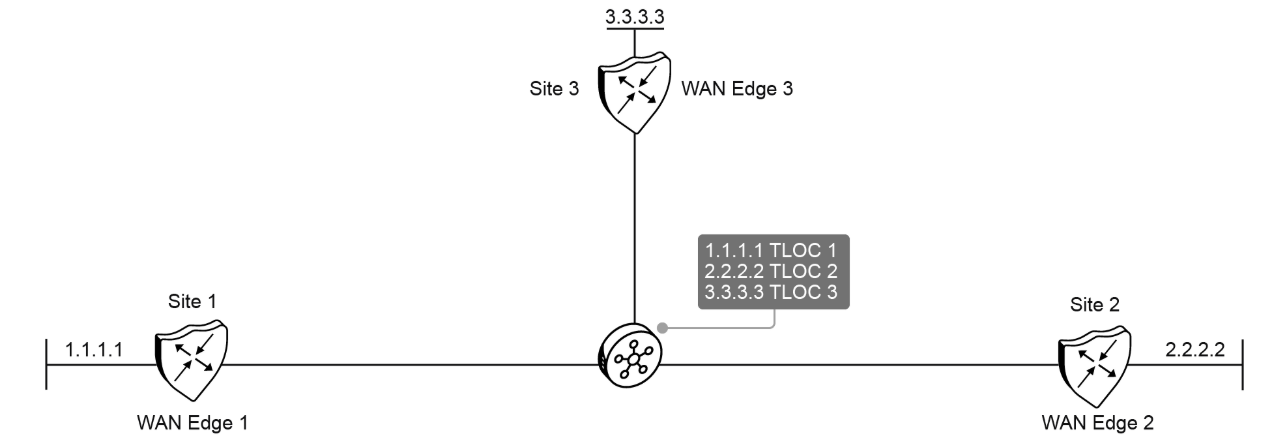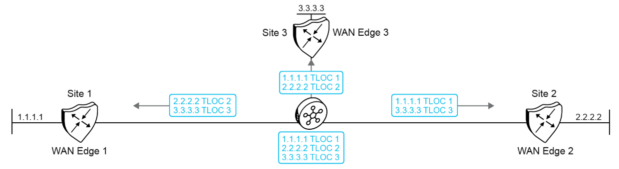 By this method, each WAN Edge learns about all other WAN Edge devices in the network, how to reach them (the transport locators, or TLOCs), which key to use to encrypt data toward that WAN Edge, and so on.