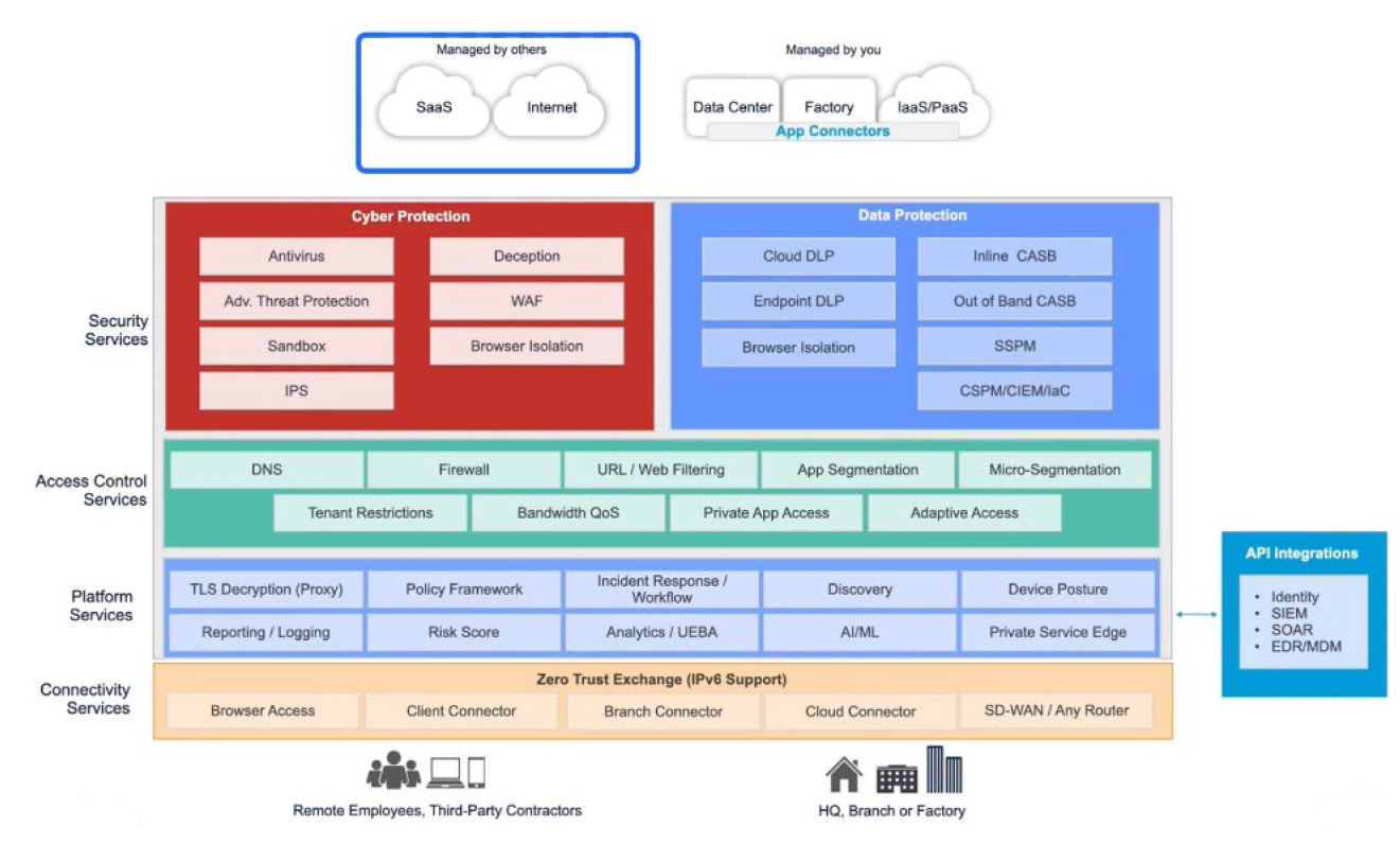 The Zero Trust Exchange, which underpins the entire platform, applies its full set of capabilities to private access scenarios as well. This includes granular access control, advanced security services, data protection, and end‑to‑end digital experience monitoring—all tailored to the private application environment.