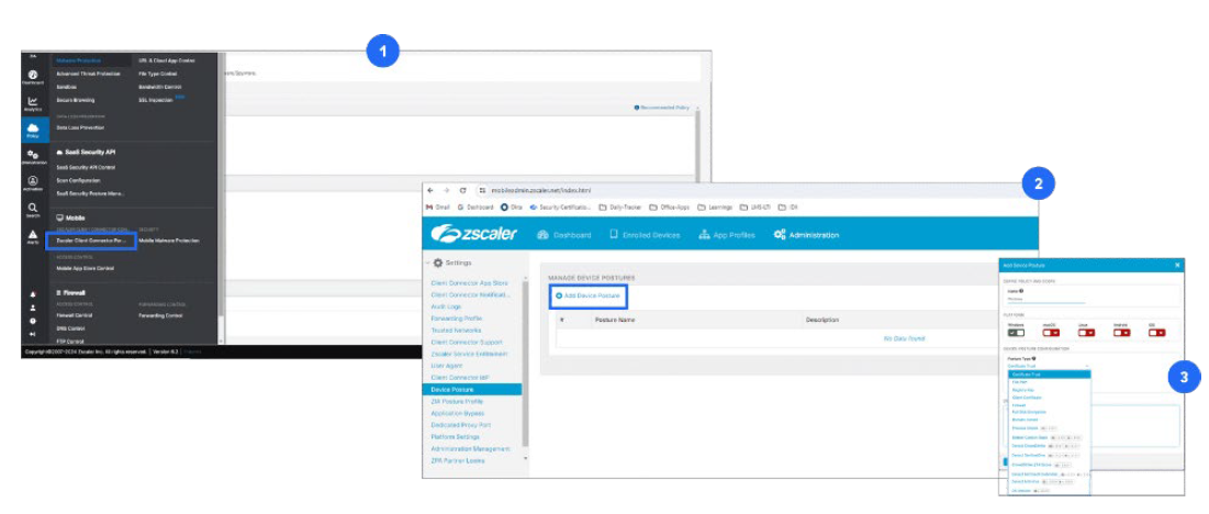 ZIA Admin Portal → Policy → Zscaler Client Connector → Administrator → Device Posture
